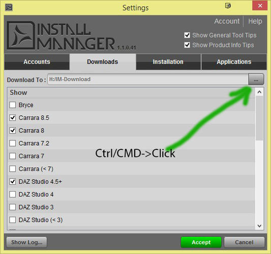 Edit: A much easier way is to Control Click the button with the 3 dots, it'll open the download directory in Windows Explorer. Also, it was pointed out to me that one can hit refresh instead of restart DIM (icon on left of Account at the top) :)