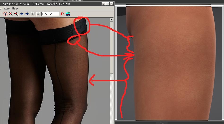 Yea, unless she has a job where she is standing with the sun always to one side, that is difficult to explain, lol. I did see some really odd looking "Stockings" when I did a quick search for a reference photo for the above example, lol. I didn't dig very far, as that one was near the top of the page, and was what I was looking for.