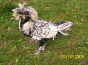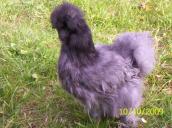 The blue is a Silkie Hen and the other is a Silver Laced Polish Rooster.