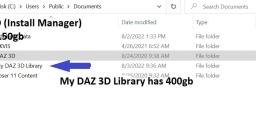 I'd change the Daz3D folder location. Since it has that 150GB in it, it would be great to have it off of my "C" drive,also.