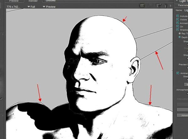 I am doing a test render using the Comic book toon tone but I see that the polygon frame edges of the character, and also the wireframe of the light show in the render.