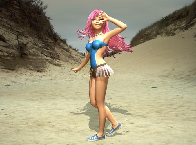 Also, there appears to be a couple of rigging issues, namely with the bangs. The first picture shows a completely unmorphed Genesis, the bangs blowing forward. As you can see, some of the tips aren't moving with the bangs, causing them to spike downwards.