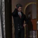 I really can't take credit for the pose, though. It's "Baffled" from Everyday Male Poses for Michael 6. And the included morph for the Grantham jacket fit the hand perfectly. I think it is the first time I've used a pose without having to modify it extensively to fit the scene or the clothes. I did tweak the expression, dialing in a bit of "confused" and turning the corners of his mouth down. And I think I tweaked his left leg a tiny bit to allow his foot to be on top of the threshold, (although you wouldn't see that in this cropped image.)