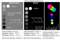 so next time you have black base displacement maps for terrain you know what to do, set the minimal displacement to 0.0 and go with the maximum displacement for your needs.There is no best or standard displacement map but only types, and DS accept both types as well , Vector displacement need partial low resolution 3Dmodel to do it's magic , also minimal displacement set to 0.0 as it have always black base