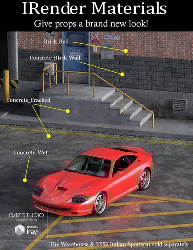 Now available is my set of PBR materials for DAZ Studio's IRAY renderer. This is a set of 30 materials which can be used on primatives to build your own scenes or applied to props you already own for a brand new look. The presets include bricks, plaster covered bricks, concrete variations, floor tiles, shingles, grass, copper and steel.
