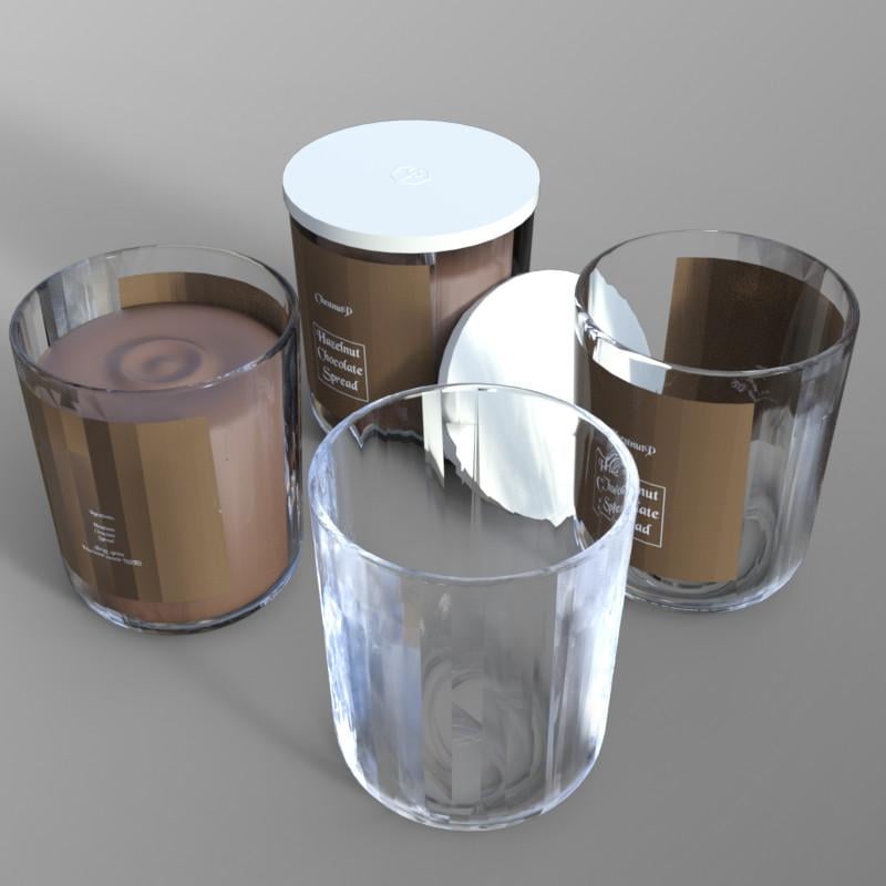 There are two props, a jar and lid. There are also three material settings, full, empty and labels washed off.