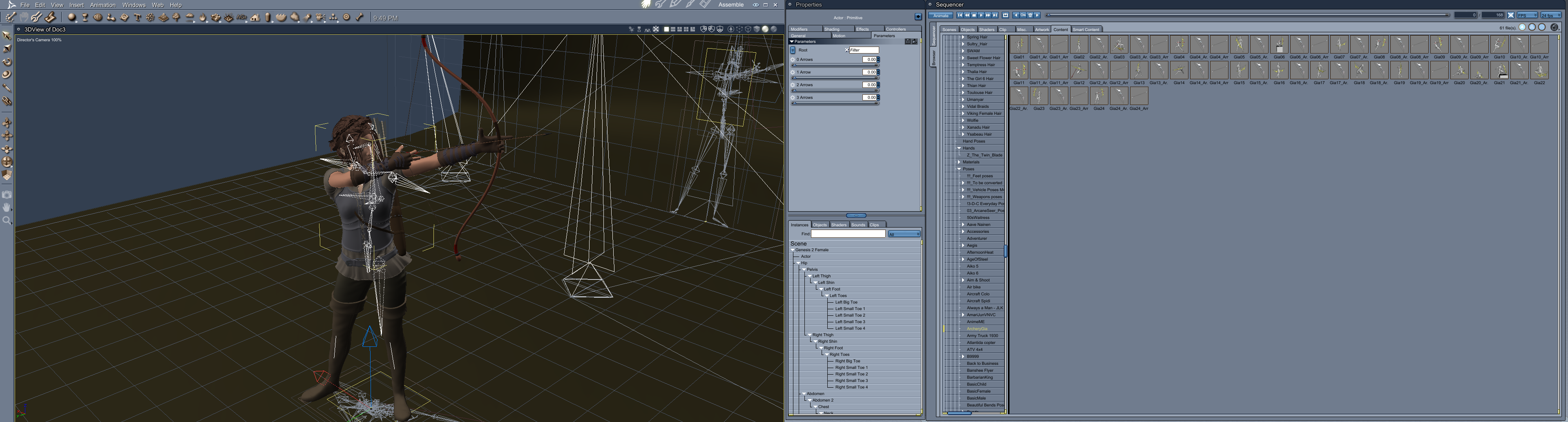 Which is where I got the Ranger Props from. Poses come with Bow and Arrow presets, but the bow icons look like they are a more modern compound bow.