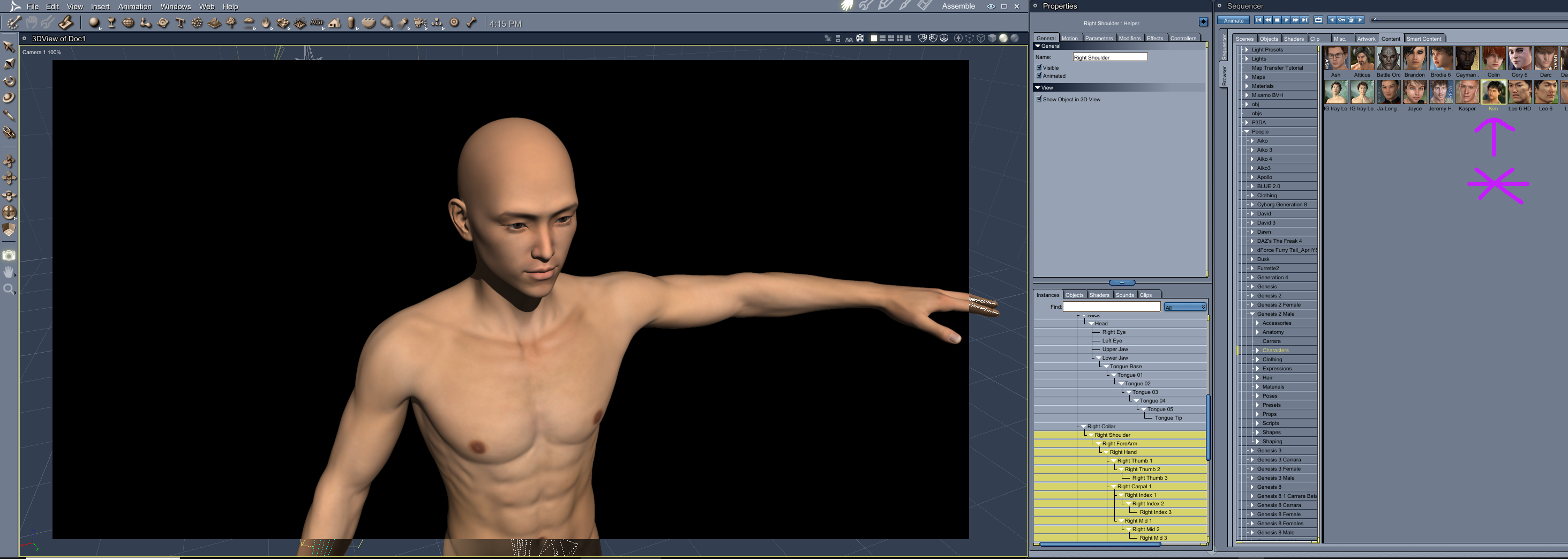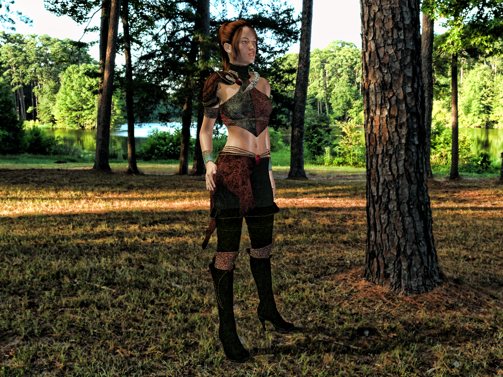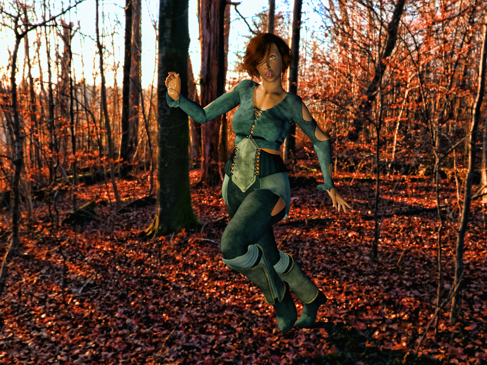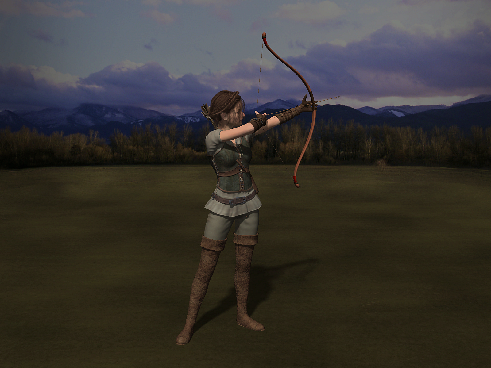 Substituted a bow & arrow I had in my props library and adjusted the pose to suit. The Quiver prop from the Ranger Props does not suit the poses.