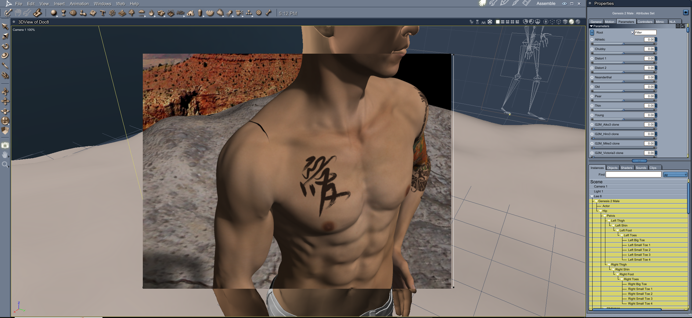 No idea why I had a rough skin from the Kim preset the first time around - something I loaded must have caused Carrara to chuck a wobbly.