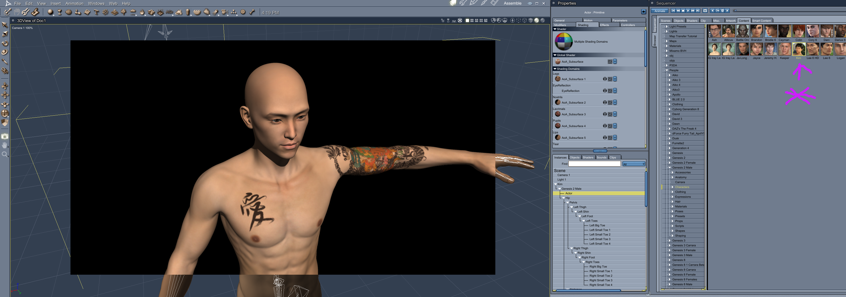 Issue 1 - AoA shaders for the Tattoos icons. Loads okay clicking on the Kim icon in the Characters folder, but when you click on the Tattoo icons you get the dreaded black nothing.