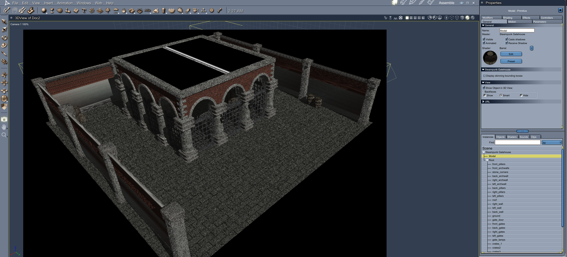 Tried Sparrowhawke's UV Unwrap on this one for the back/side walls and the grounds - no result. Will replace with another shader.