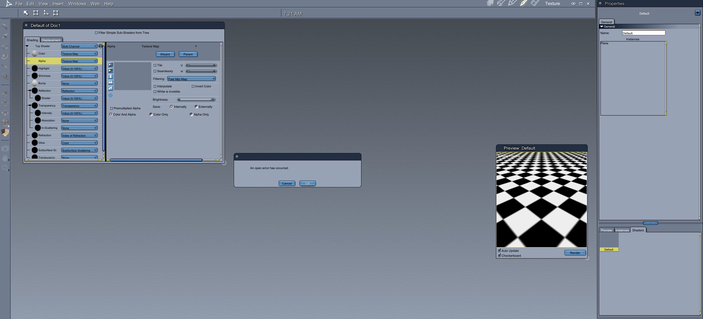 In Carrara tried loading the 4096 pixel texture into the Alpha channel, got an open error.