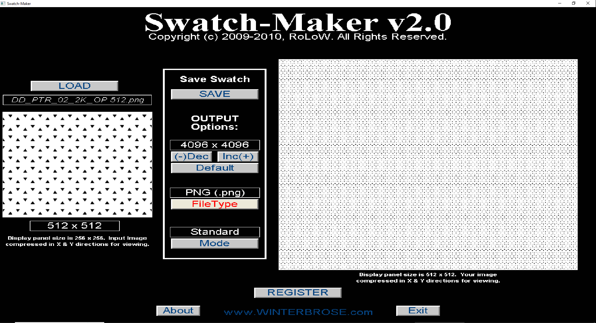 In a program called Swatch-Maker by Winterbrose converted 512 pixel texture to 4096 pixel texture.