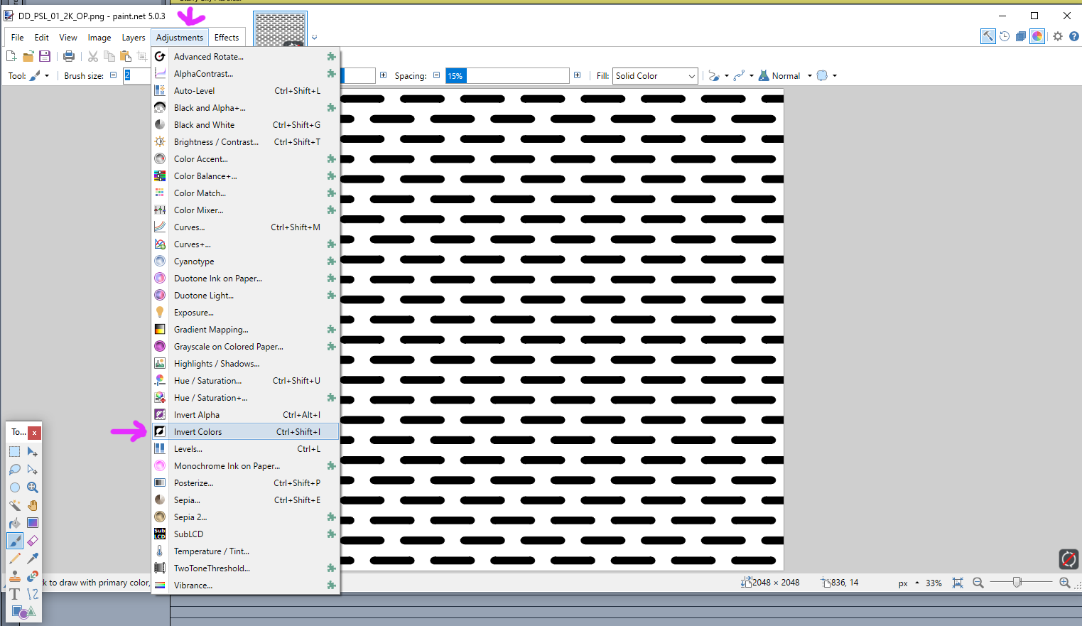 Step C - Still in the Adjustments Tab, click on Invert Colors again