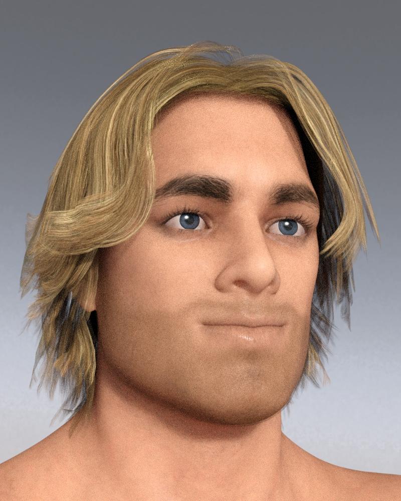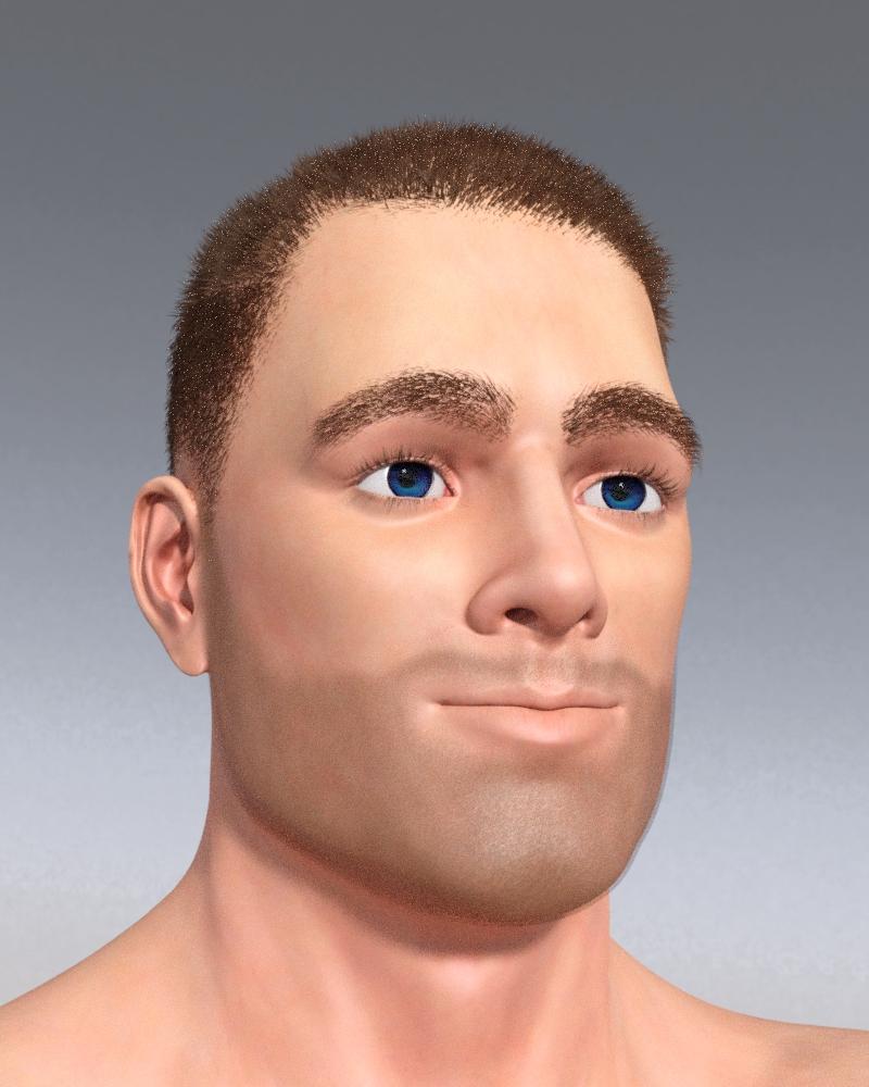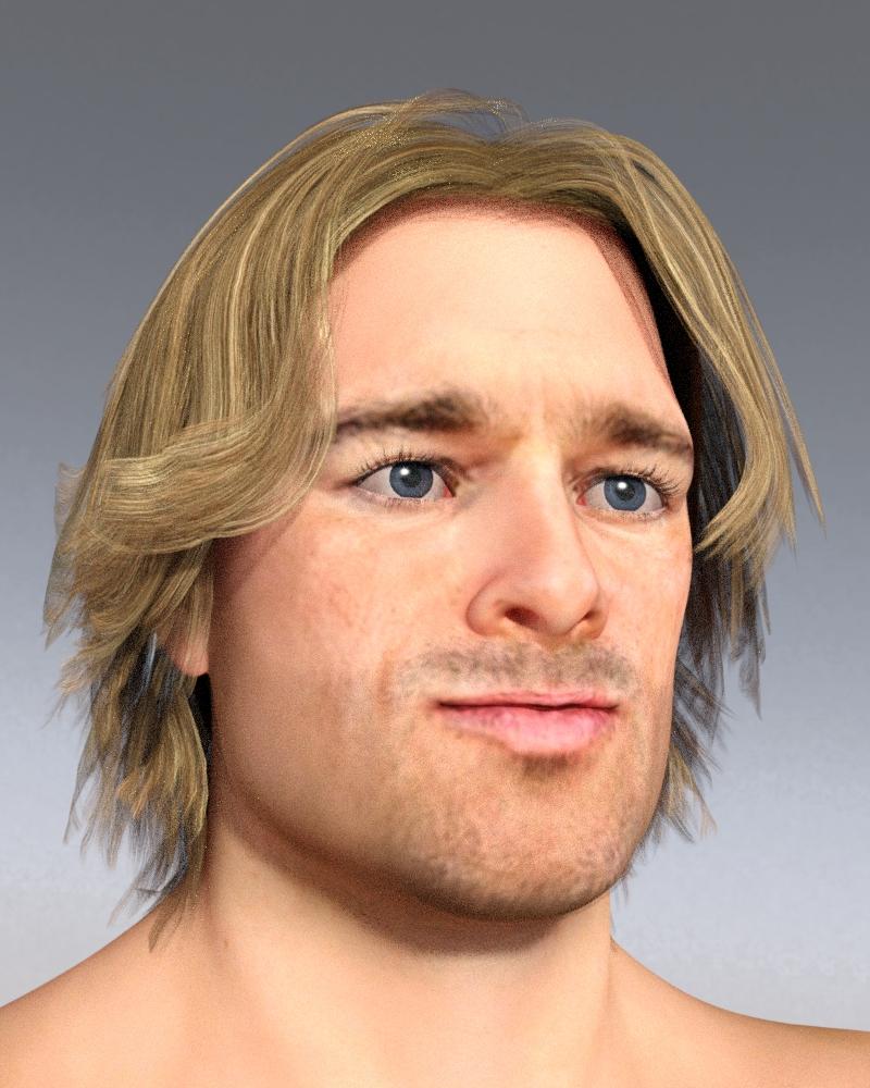 First version is with the skin that comes with the freebie. It probably looks the most like Brad, but it falls a bit into the uncanny valley, trying to be photorealistic but being too low-res to really get there.