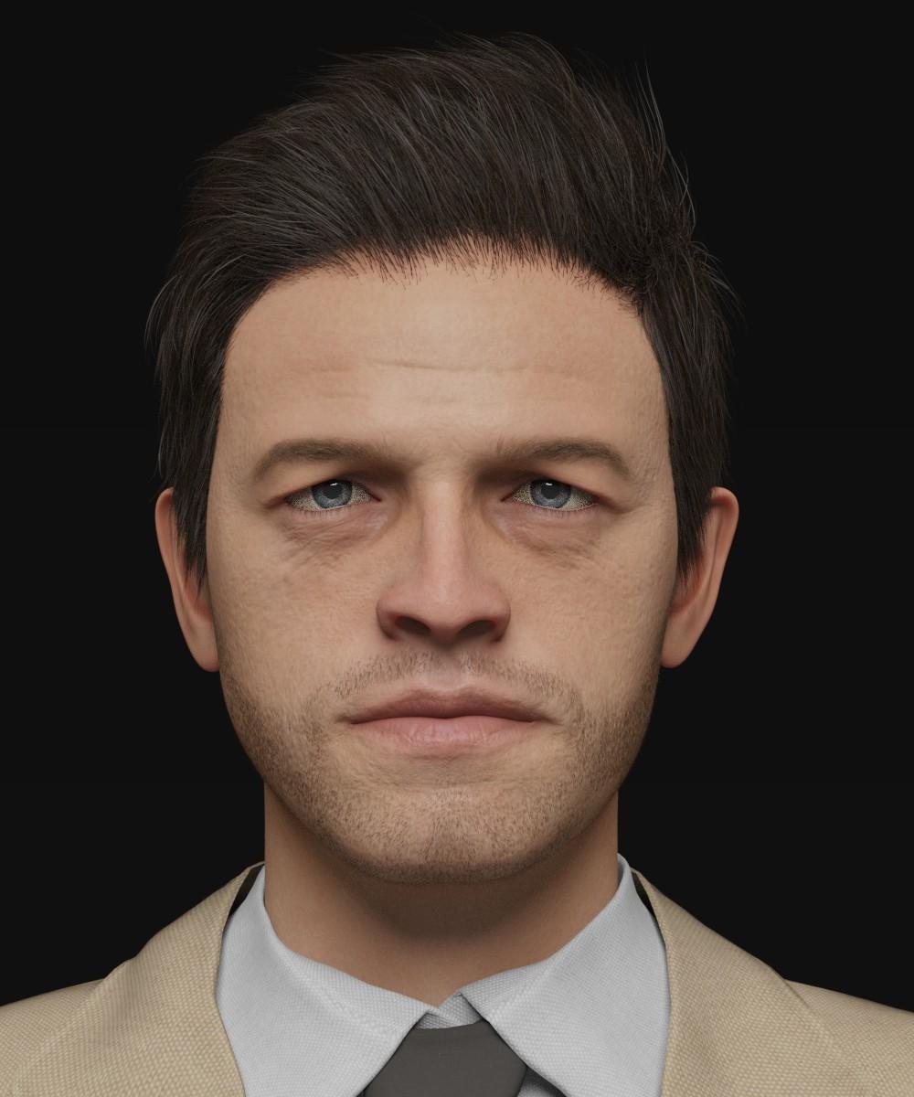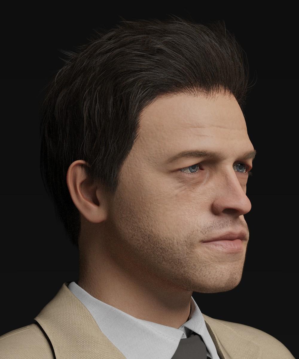 Hair and stubble are placeholders until I create some that more resemble the intended actor, and everything else is work in progress: