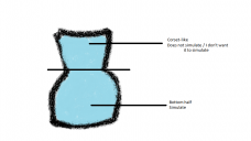 Basically I'd like for the torso/corset to be rigid/keep its shape/not simulate/or make it "tighter", and only to have the skirt simulate. Don't worry if you don't understand my dilemma, I've drawn something in paint to try and help me explain it (see attached).