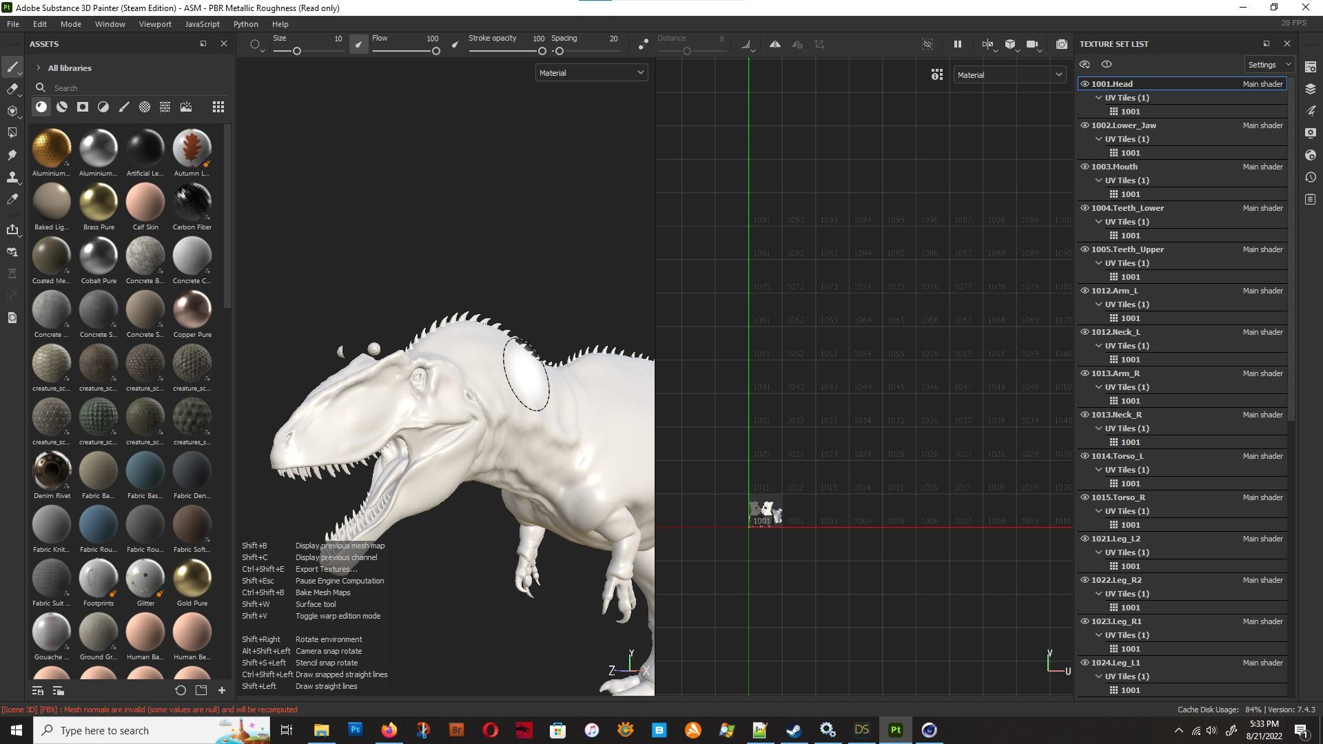 I have Substance Painter 2021 and wanted to give making some textures for their Giganoto a try, sine it's been so much fun doing so with the T-Rex 3.0 HOWEVER the model's got around twenty unique textures for it, five alone on various segments of the tail(!!?), and as a result the model's just shy of impossible to paint in Substance since its treating every one of the twenty three selections as its own unique material with no ability to cross over them. Painter keeps talking about how simple and easy it is to load a model with multiple materials and then paint across them, but I'm not seeing anything of the sort?