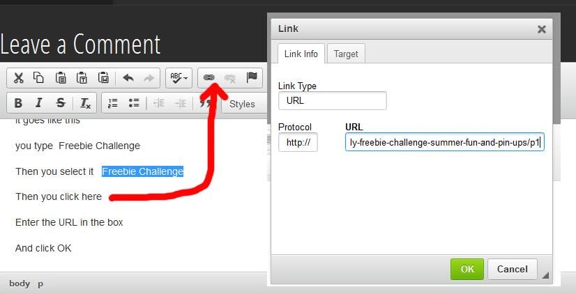 You need to use the The tool from the toolkit above to make that sort of link, that one up there, just along from the flag
