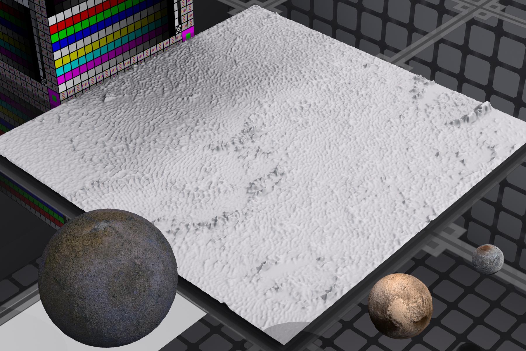 Unfortunately even with that 'Blur' and that Bump map feature, even the best 'Cross lighting maps', just are not all that useful for some things. Caloris Planitia on Mercury (ball on left) is just completely lost without the diffuse color map. However, what about Pluto and Charon (thanks Steve Albers for making the color maps). Well Pluto and Charon on the right again just don't look quite right using GIMP's Bump map thing for making a Displacement map of the 'Planets' (or Whatever you wan't to call them).  Taking a Cross lighting photo, and turning it into a Viable "Displacement map" has got to be the most difficult thing, if not impossible (I've been trying for over a year now with Mercury's global maps, it dose not work).