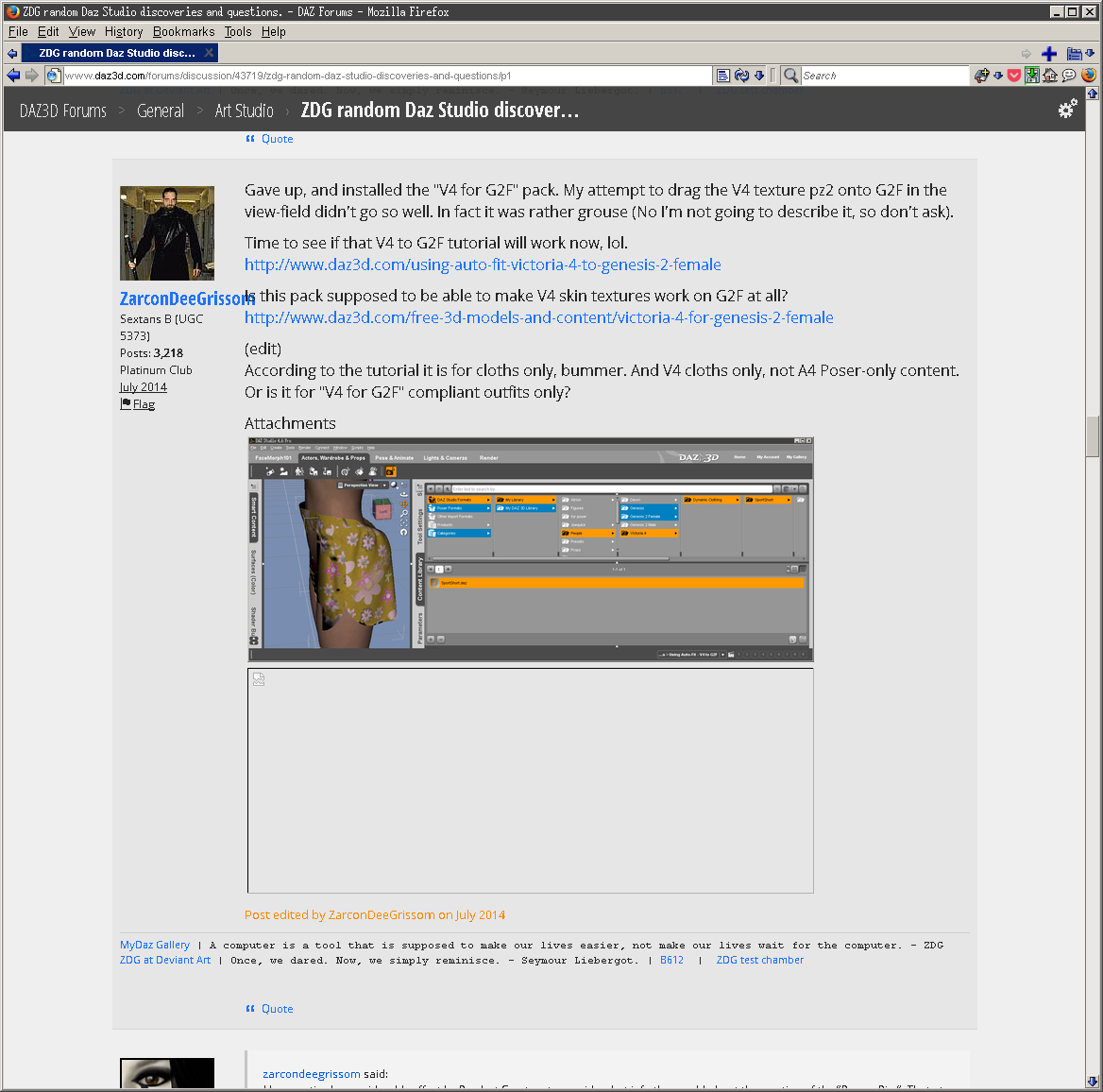 And of course now I have started getting problems myself, having been saying I wasn't seeing it. I get this in some threads now http://www.daz3d.com/forums/discussion/comment/785464/#Comment_785464