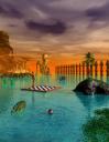 The villa is the beta version of Army's (Alan Armstrong) Italian Villa, a great model made up almost completely of Bryce primitives. I added lights and letters from the library and a bit of water. Light and backdrop is from an HDRI I made, sun diffuse is 5; it adds just a tad of additional light.