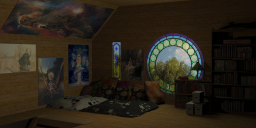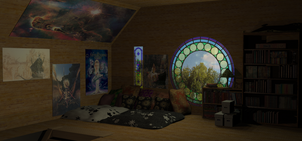 @dragonfall1221... Wonderful...wonderful... I really love that attic space... Who wouldn't? Great stained glass windows with the clear glass seeing the gorgeous day outside... very nice..