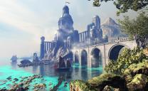 All the buildings made in Bryce by me. Estevez rocks in the foreground. Trees and Ships from Archive3d.