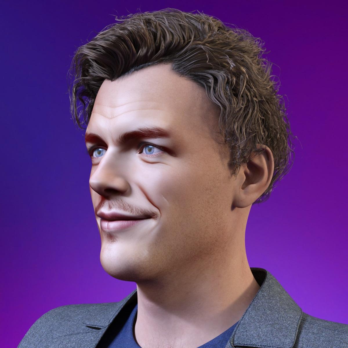 Custom Genesis 9 character created with Face Transfer 2 with AI textures applied to some elements of the scene.