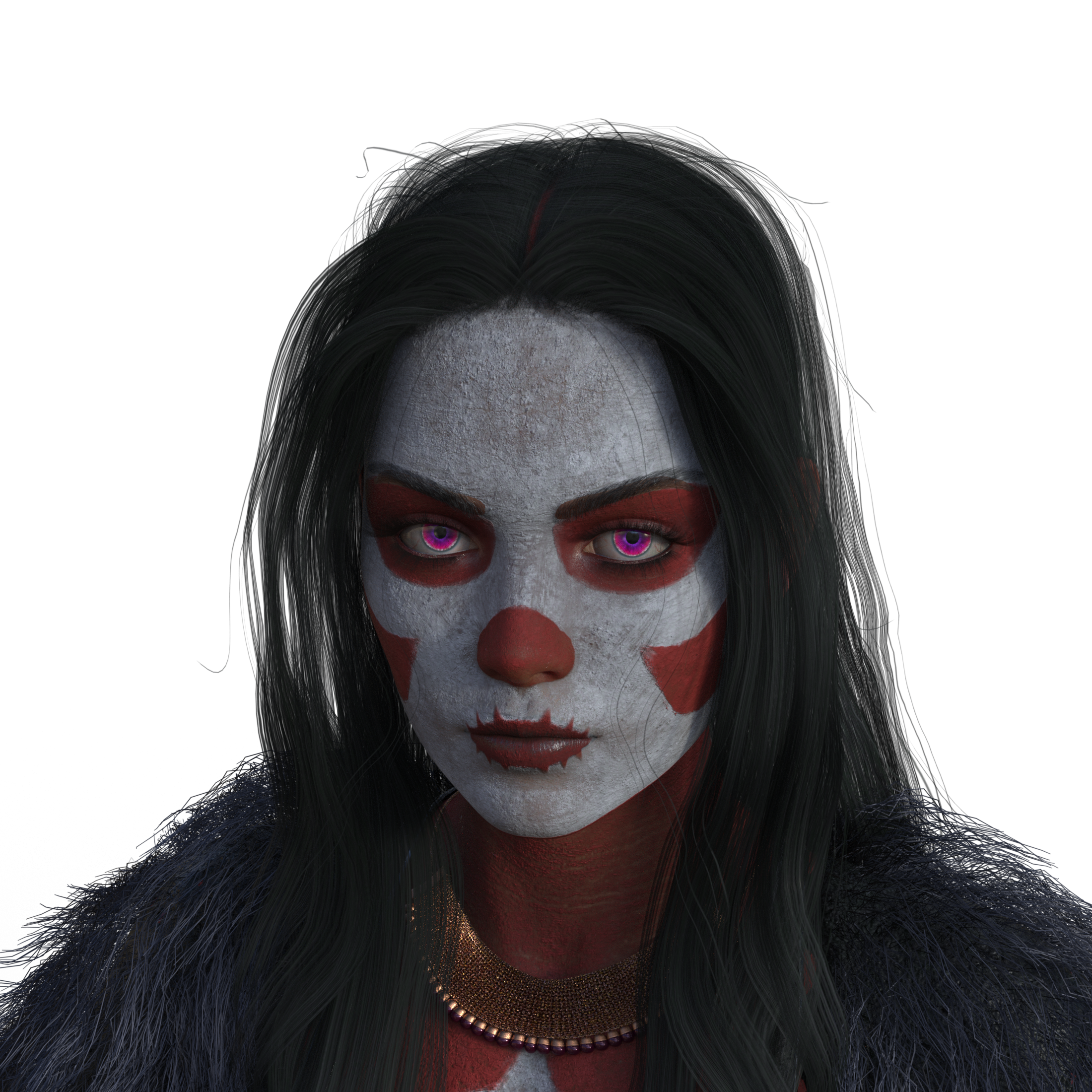 First I had to get a base image that I hoped would guide the AI generation the direction I wanted to go. Unfortunately I didn't have any face/body paints with the exact options I wanted, so I composited 3 images together to get the starting image I wanted (the last/bottom 3 images are what I use to make the starting image).