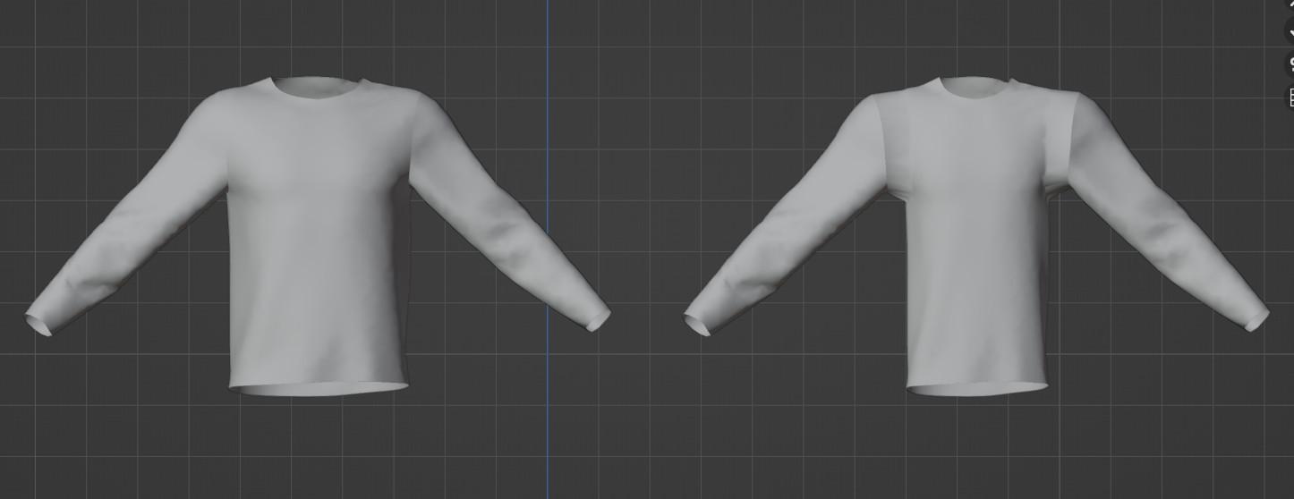 I have a shirt (left image) that I quickly edited to show you what happens to me (right image, the central part is narrower)