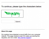 That is coming up every time I try a search now so I'm obviously flagged as an undesireable. I'll need to do the Captcha thing to be able to search again :(