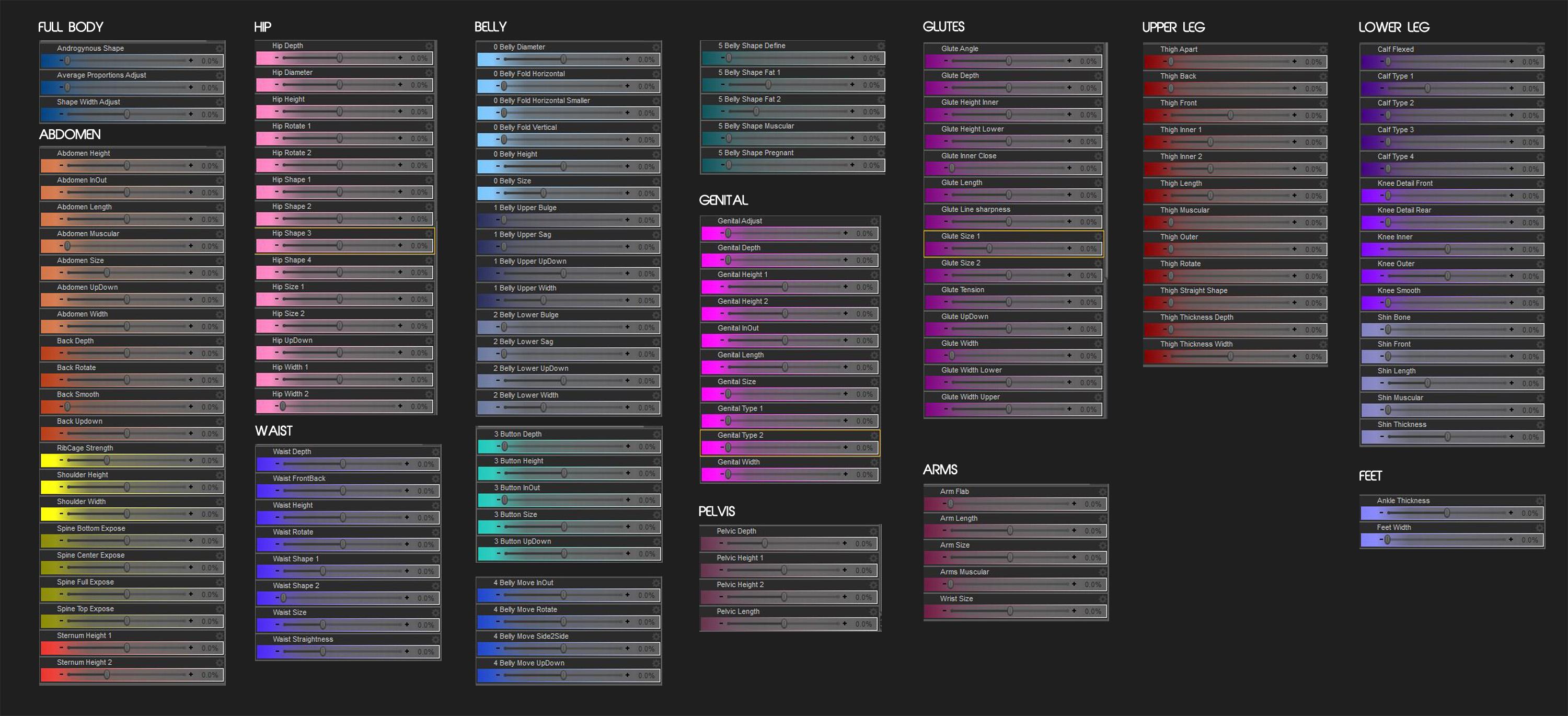 Awesome to see morphs for the Spine, Ribcage and Knees ! Defining morphs for the bone structure much appreciated, was really hard for G2s for instance to get a very slim character to look correct without using a full FBM which didnt always work well, since was changing everything drastically. Some folks have much more pronounced structure, like David 5 for instance, and it has great artistic value such details