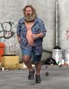 Here is Nikolai in his Threads shirt and Dash Shorts. (I'd run out of that trashy area, too, if I was wearing that much gold and being chased by rats!)