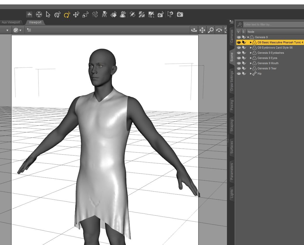 EDIT:  This tunic was designed for the Genesis 9 basic masculine shape as an avatar in MD.  In the transfer utility, I set source to 'current' and checked the options for reverse shape.