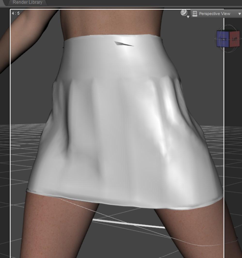 Thanks, Ramwolf.  I turned visibility back on to show that the add-on did not stay in place after I morphed the figure to V9.  The add-on was modeled so that each vertex matched a corresponding vertex on the skirt, bridging the back of the hem to close thickness.  For some reason, when the garment morphs, the add on is no longer matching, even though the ads on was saved as a wearable preset for the garment.  I must have missed a step, or left smoothing on when I should not have, or turned it off when I should, or....