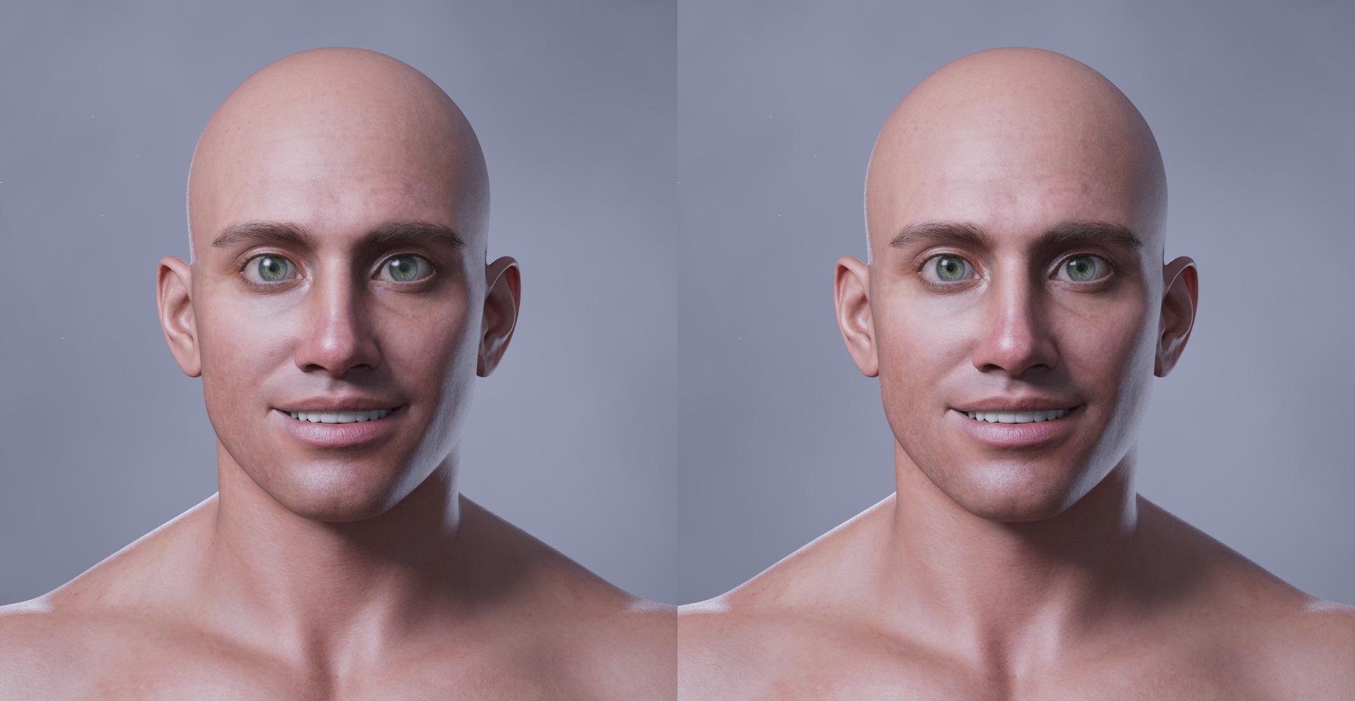 Here's a test render of G9 with my regular eye moisture materials preset on the left, and my subtle version materials preset on the right.
