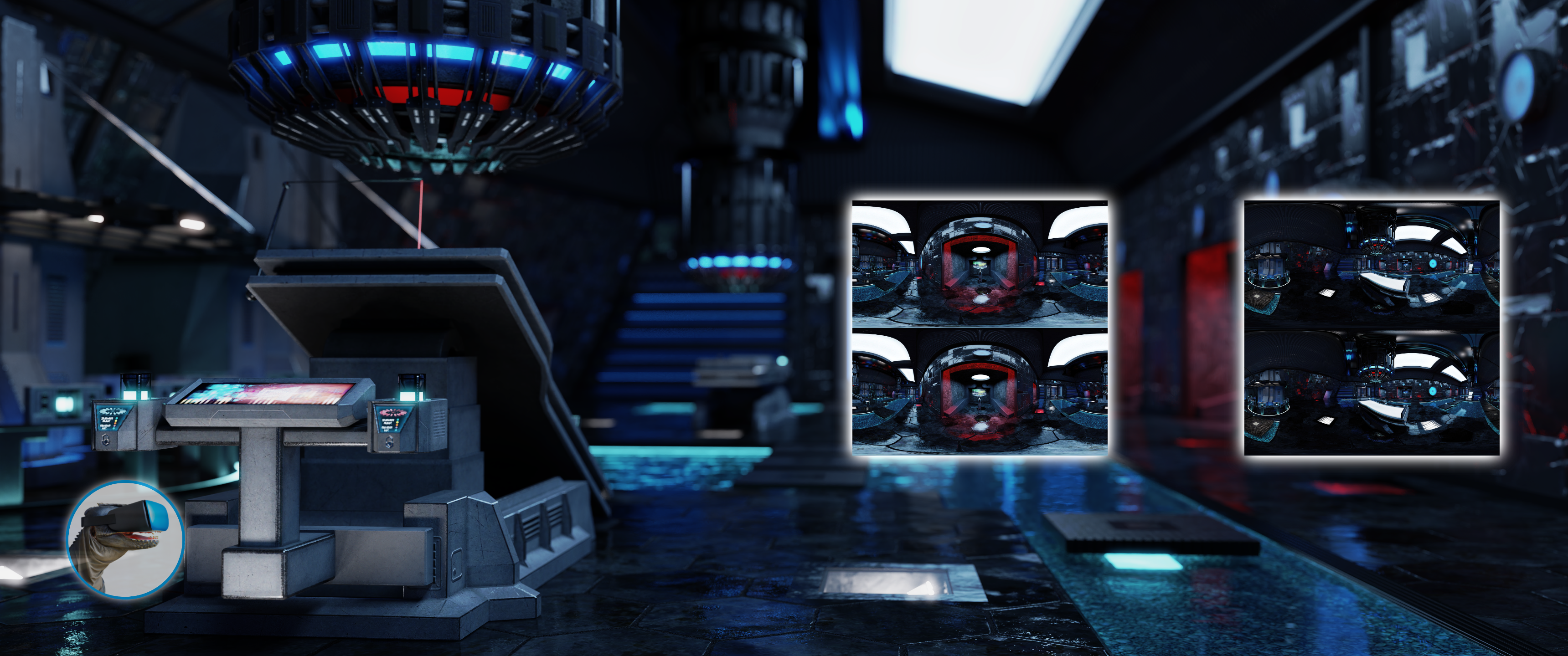 Each VR render file is labeled with the tag "_360_TB", indicating to Pigasus the correct display format for the images on the Meta Quest 2. Specifically, the stereoscopic 3D VR format employed is "360 over/under" (also known as top/bottom). This is important to note if you're using a different VR headset or media player.