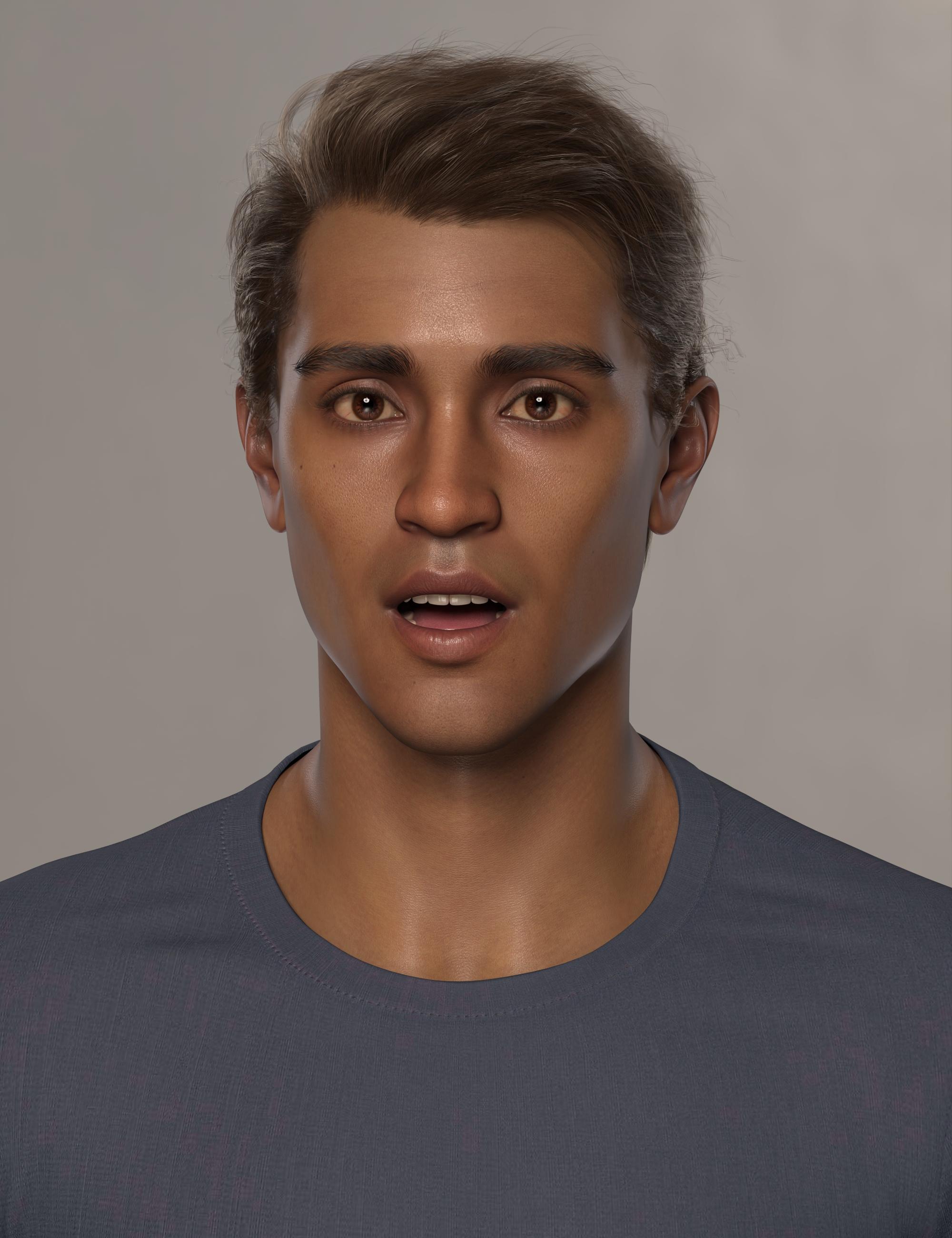 I'm still working on this guy...mostly his skin. I don't like the African skin included with G9 as I find it too "blotchy". So I'm working on mixing it with the Latino/East Indian skin provided. Not there yet.  I used this expression 'cause I liked the wrinkles on his brow and forehead. LOLOL laugh