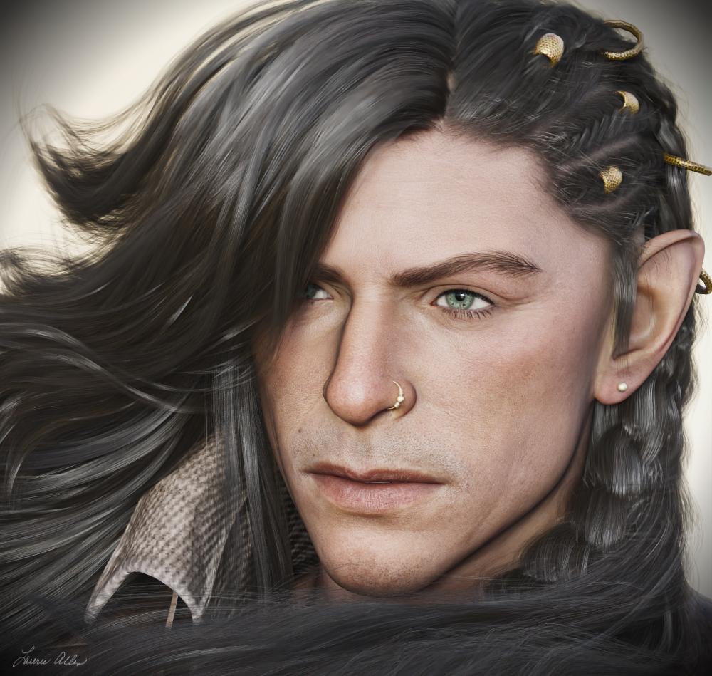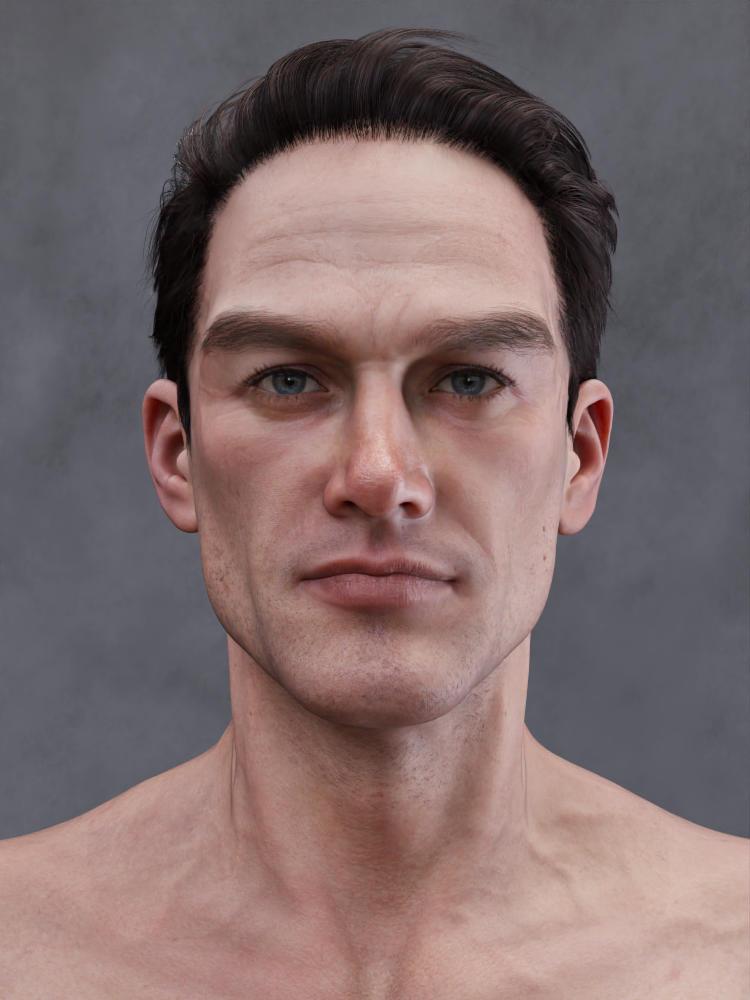 I tried to make Eleanor's brother. It uses 100% Eleanor Head, and 59% of her body, and many other morphs. I couldn't fix the pecs satisfactorily with her body dialed in. That is likely a lack of my skill. I didn't try real hard, since they are not in my portrait render.