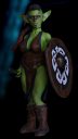 • So started this one using G8 Female using the plethora of morphs I had for G8F. I than used a tutorial to convert it over to G9.  From there I tweeked it further with the G9 morphs I had.  Threw on Victoria skin texture and played with the colors and weights to get a nice green coloring. Added a Josie Makeup option as well as a War Paint Lie from the Freja bundle.  Viola a Goblin Female Warrior.