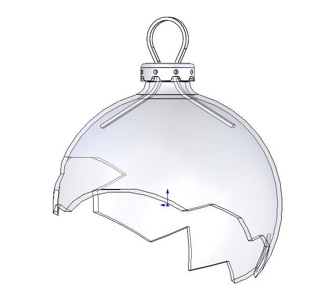 Added a broken bauble, top half to the zip this evening. It appears my home made modeller managed to create some mal-formed facets between the broken edge and inside/outside surfaces when de-triangulating. In this case I think they work as they're on the fracture edge and could be caused by spalled bits of glass, but I need to sort it in the program as it happens despite a check for a maximum 10 degree difference in normal direction, and the problem is happening with a 70-90 degree difference.