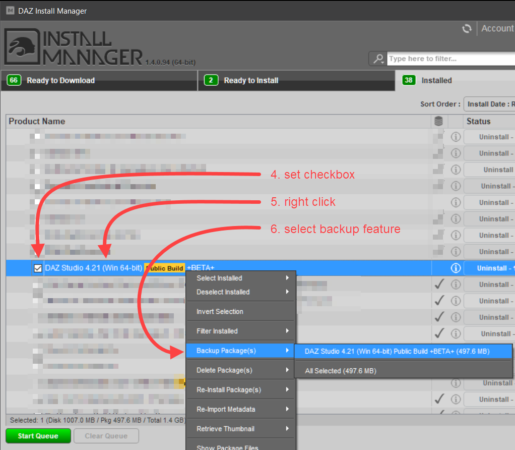 - When defined, context menu options for backing up (copy to the specified path) the selected packages are made available