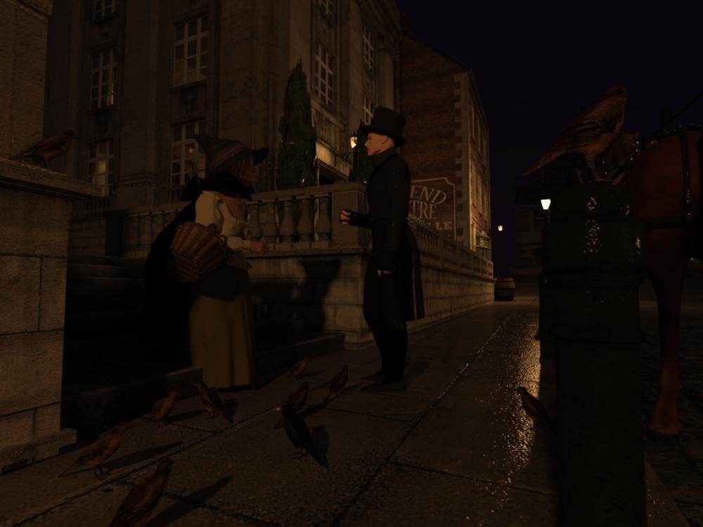 I've been messing around with emissive lights, The Streets of London, lat/long sun settings, sky colour etc. and this came to mind when I read the theme for the competition. They are both set for London, 21st of December . The first one five o'clock with a light sky. The second at 11 o'clock with a dark blue sky. The DOF on the first is too far away from the camera which makes the pole and bird in the foreground too fuzzy, I changed it in the second one. I will have to go back and change the lights as they are emissive on the glass and it wasn't until earlier today that I noticed the gas mantles inside so I will move the emissive shader onto them. Being on the glass means that the light from them instead of being 150 watts is actually 600 because there are four sides