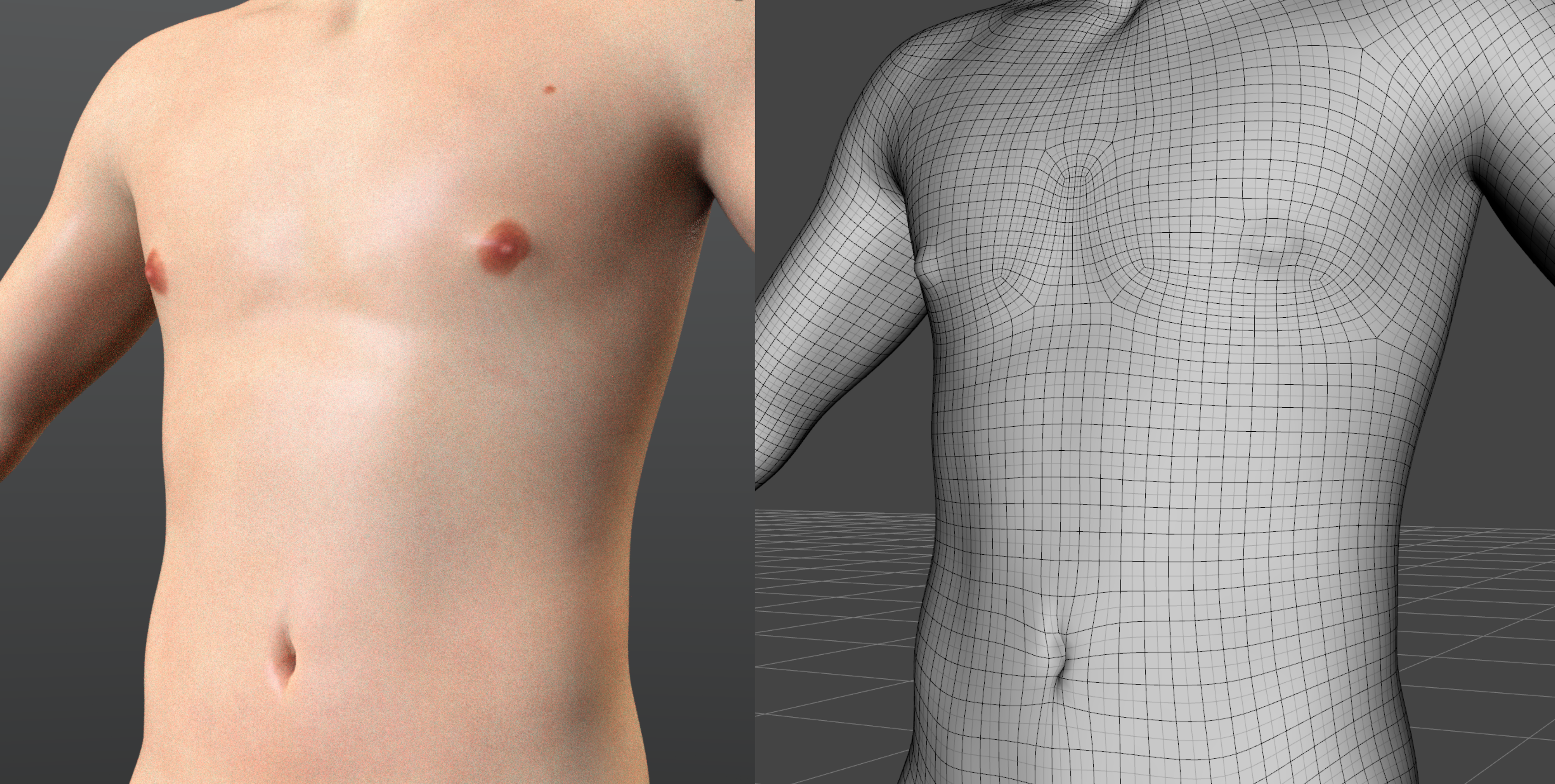 It's not a fantastic example, but that under pec geometry is what creates the definition and it can be smoothed out entirely flat or shaped differently with no problems. I think we probably just haven't seen many examples at all of masculine body sculpts where people are doing something very different with it.