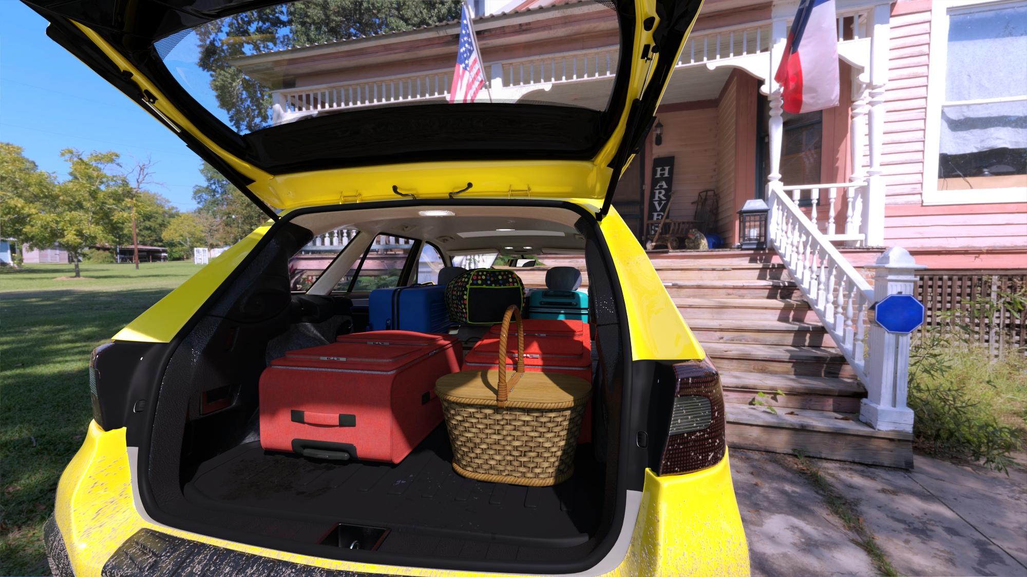 Unfortunately, while I was working on a new scene with the rear hatch open, I discovered some errant dirt polygons in that configuration. It appears in both LHD and RHD. I colored the dirt car surface turquoise here to make the dirt surface more visible. I circled the bad polygons in red.