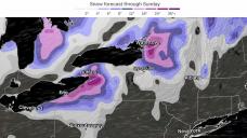 Map below shows the snow area.  I live in the purple area between Buffalo and Erie.  The 12" to 18" area.frown