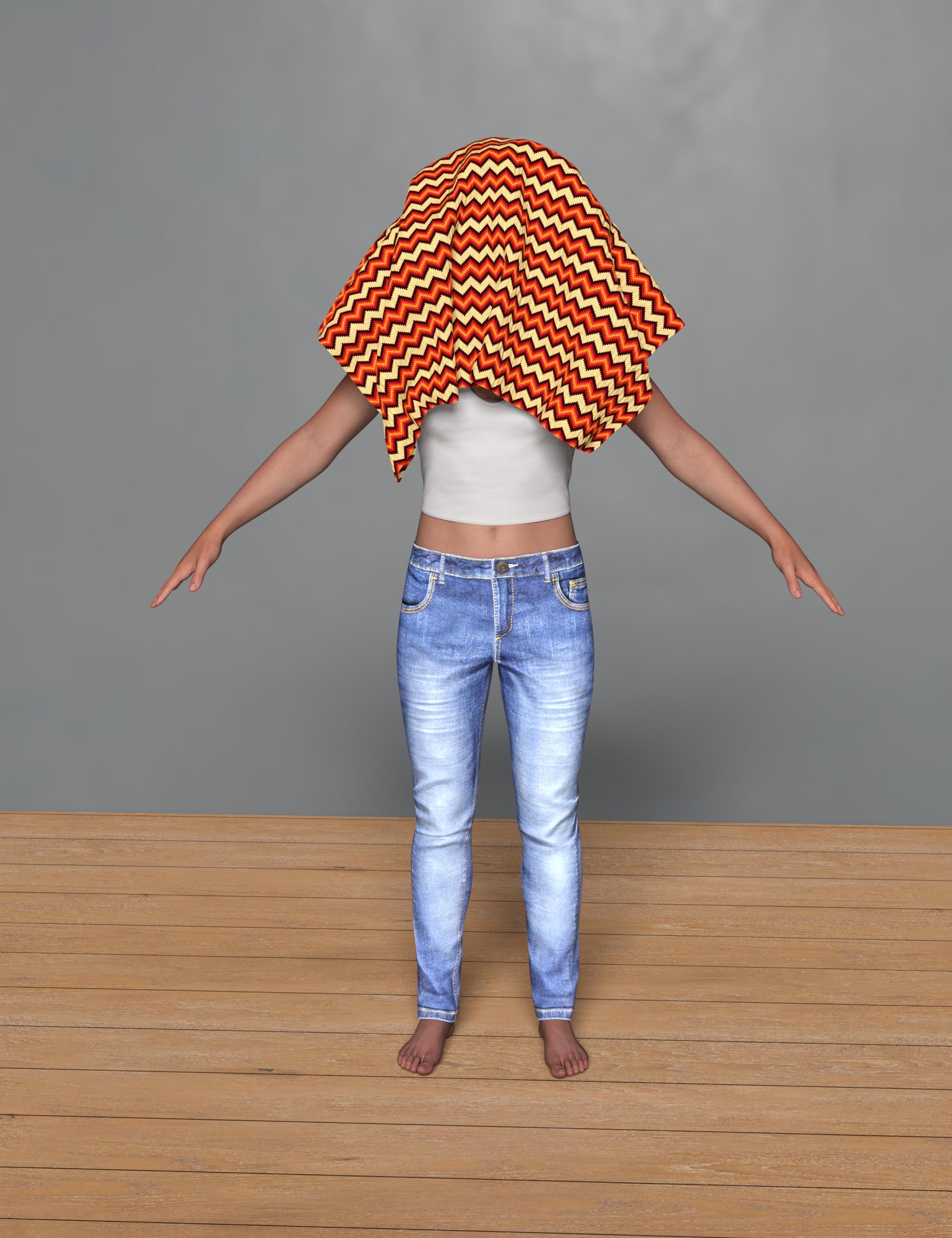 Thank goodness the product library to DIM coping allowed me to install the plugin. I managed to get one render uploaded late last night. This is a one meter square plane draped on a decimated (25%) G9 base figure. I followed the springs example with the sphere and plane and then branched out to G9 and a plane. After the plugin finished, I swapped in a fully textured full res G9 base for the decimated one. This one meter plane sure stretched out a lot. I also did a shell version, which did not stretch like that, but that left a nipple exposed (he had no shirt) so I'd better not post it. Since it is the base G9, it sort of has breasts, and I think textured exposure is verboten. I rerendered with a shirt, but now I can't upload.