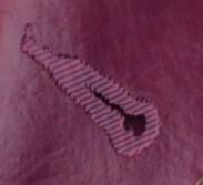 This is what the product buttonhole texture looks like. You can see that the uniformly angled lines bear no resemblance to the stitches of a real buttonhole (shown above). It kills the realism of the very nicely modeled and textured coat.