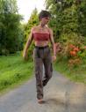 I bought the Sue Yee outfit https://www.daz3d.com/dforce-su-fashion-set-for-genesis-9-81-and-8-female that lou_harper pointed out yesterday. The belt is a separate accessory and it has a shorten morph, which I used to 100% here. I tried going beyond 100% by disabling limits, but the belt kinked.